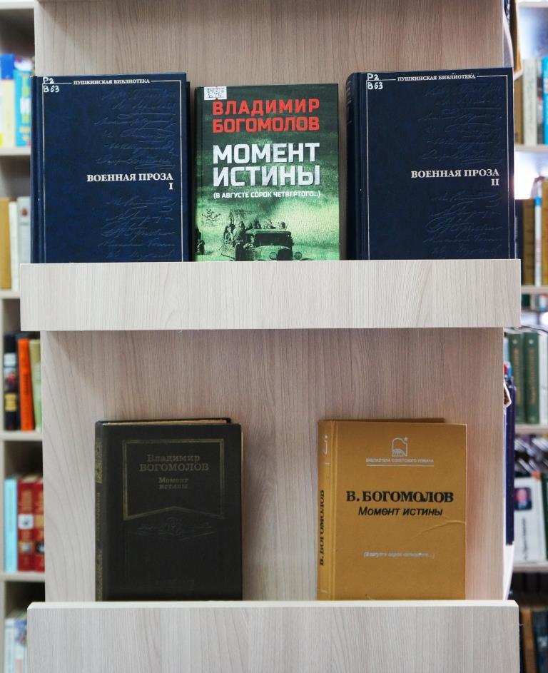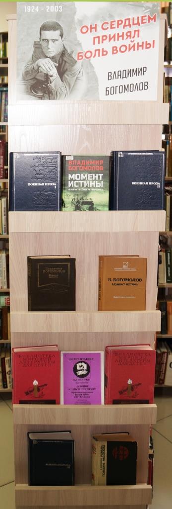 В рамках цикла выставок о писателях-фронтовиках к 80-летию Победы в Великой Отечественной войне в Центральной городской библиотеке открылась книжная выставка-портрет, посвященная творчеству Владимира Богомолова.