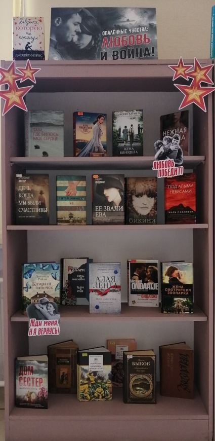 Выставка-рекомендация «Опаленные чувства: любовь и война» представлена в Центральной городской библиотеке с 15 мая.