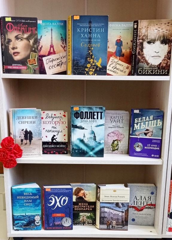 На выставке представлены книги отечественных авторов, таких как В. Быков, В. Богомолов и зарубежных авторов: М. Ондатже, Э. М. Ремарк, Э. Дорр, где любовные отношения главных героев развиваются на фоне боевых действий Второй мировой войны. Эти книги подтверждают две вещи: историю невозможно забыть, и любовь в состоянии перенести любые ужасы, даже если это война.