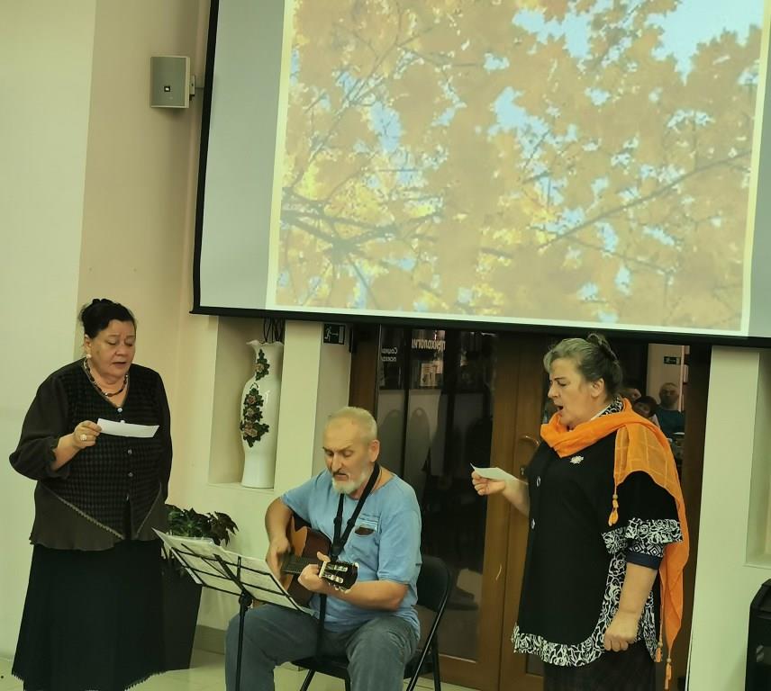 Гость встречи Александр Громик пел свои песни и всеми любимые произведения про осень.