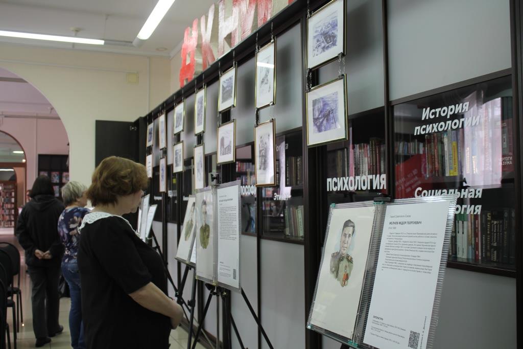 Подлинные работы будут экспонироваться во всех 33 центральных библиотечных системах региона, в том числе в нашей библиотеке представлены портреты семи Героев – это, Желнов Ф. Г., Зверев В. В., Зинченко А. Р., Кагыгин П. П., Килин П.И.