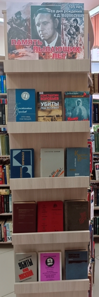 К 105-летию со дня рождения выдающегося писателя-фронтовика, одного из ярких представителей «лейтенантской прозы» Константина Дмитриевича Воробьёва, в Центральной городской библиотеке оформлена книжная выставка-портрет «Память пылающих лет».