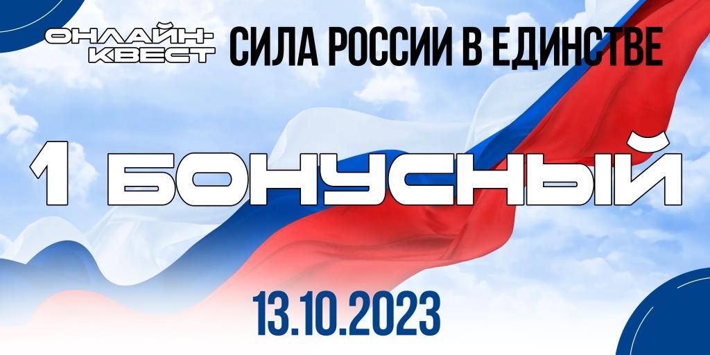 13.10.2023 есть возможность заработать дополнительные баллы в первом бонусном раунде онлайн-квеста «Сила России в единстве».