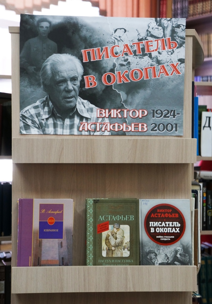 В рамках цикла выставок о писателях-фронтовиках к 80-летию Победы в Великой Отечественной войне в Центральной городской библиотеке открылась книжная выставка-портрет, посвящённая творчеству русского писателя-фронтовика Виктора Петровича Астафьева.