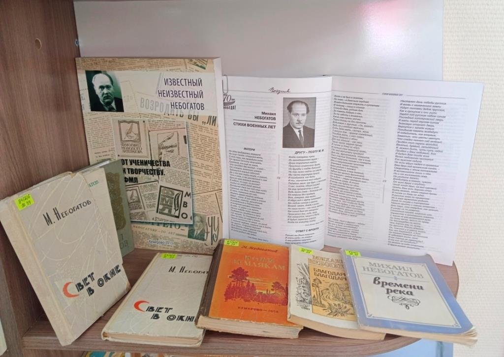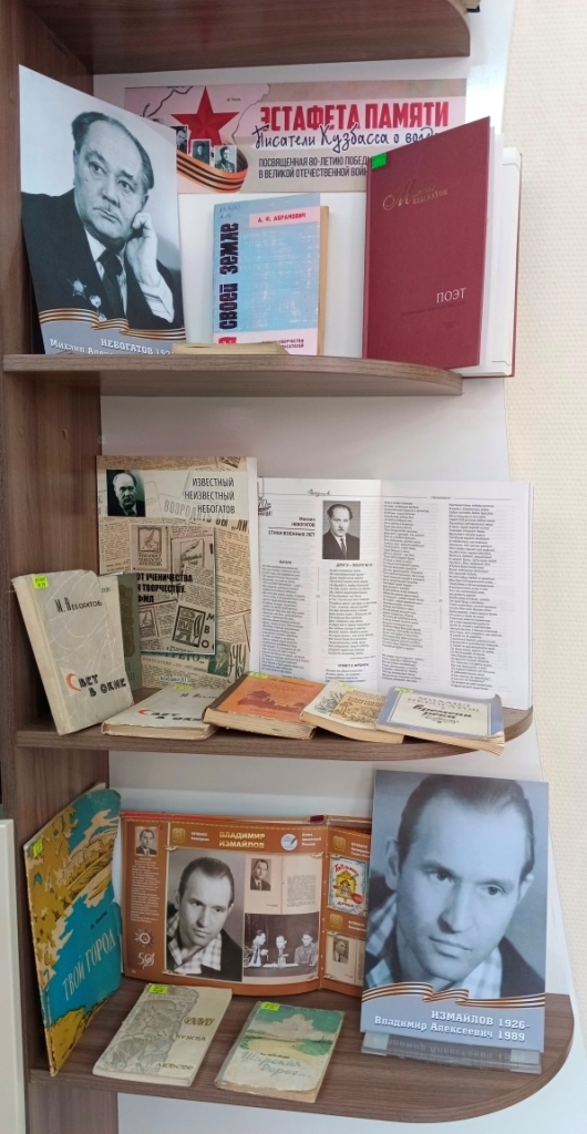На выставке представлены издания писателей кузбассовцев, не на словах узнавших, что такое война. В марте месяце читатели библиотеки познакомятся с биографиями и творчеством поэтов-фронтовиков Небогатова Михаила Александровича и Измайлова Владимира Алексеевича.