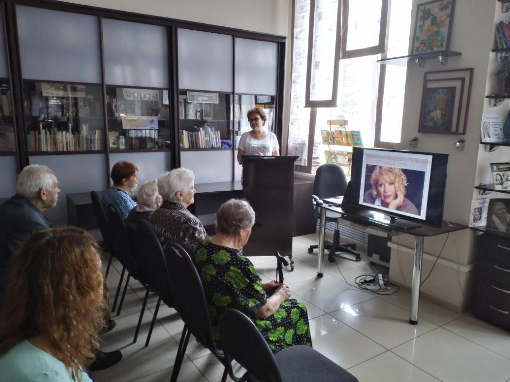 Пенсионеры Дневного пребывания Центра социального обслуживания населения и Дома-интерната для престарелых и инвалидов узнали о личной и творческой жизни актрисы. Слава пришла к народной артистке РСФСР Галине Александровне Польских ещё в юности, и с годами её популярность становилась всё больше и больше. Актрисе удаётся вживаться в образ, и это происходит так органично, как будто она не играет, а по-настоящему проживает жизнь своего героя.