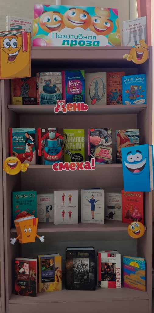 Выставка-настроение «Позитивная проза» приурочена ко Дню смеха.