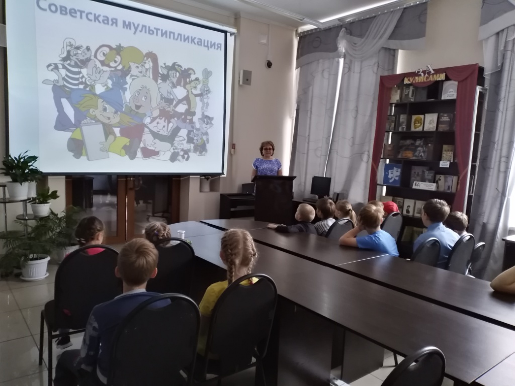 Это мероприятие было направлено на развитие интереса ребят к российской мультипликации. Вначале библиотекарь познакомила детей с историей возникновения мультипликации, как вида искусства. Дети узнали много интересных фактов о мультфильмах, например, на создание мультфильма «Пластилиновая ворона» ушло около 800 кг советского пластилина, который из-за блёклых цветов пришлось раскрашивать красками. А в городе Новокузнецке установлен памятник котёнку по имени Гав. Затем с помощью весёлой викторины «Мульти-Пульти» присутствующие встретились с любимыми героями, вспомнили их крылатые фразы и названия известных анимаций. В завершение встречи дети просмотрели мультфильм по книге известного писателя Г. Остера «Котёнок по имени Гав».