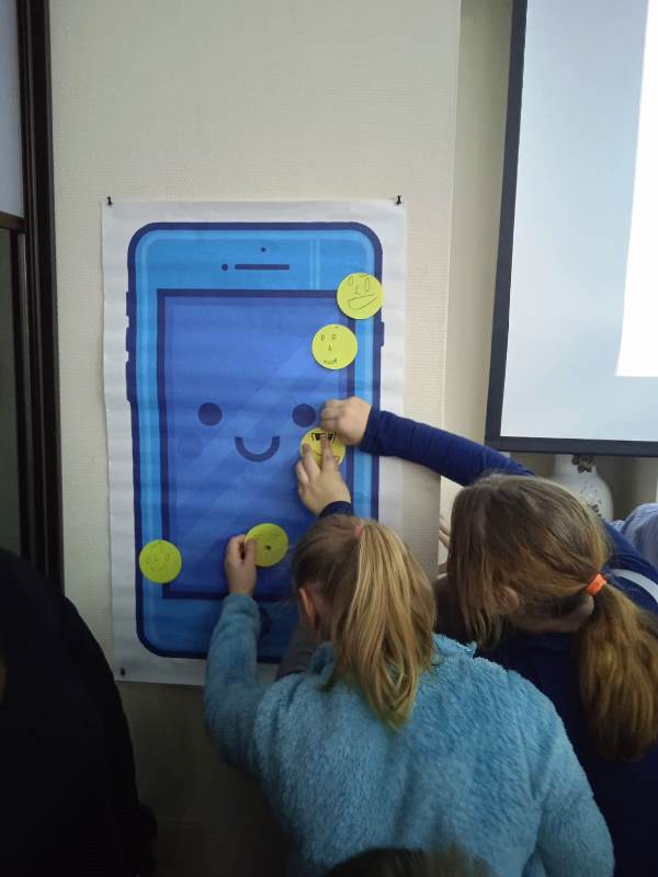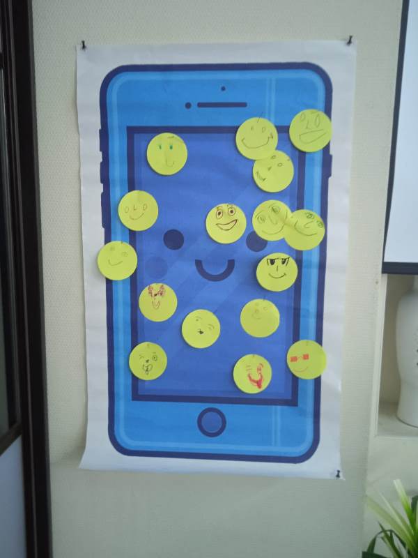 Главным героем путешествия были смайлики с веселой и доброй улыбкой. Ребята не только узнали историю создания смайлика, но и приняли активное участие в викторинах, веселых подвижных играх. По завершению мероприятия каждый из участников нарисовал свой собственный смайлик, с тем настроением, которое они испытали и прикрепили его на импровизированный смартфон. На смартфоне были только веселые, радостные и добрые смайлики. Все участники получили сладкие призы.