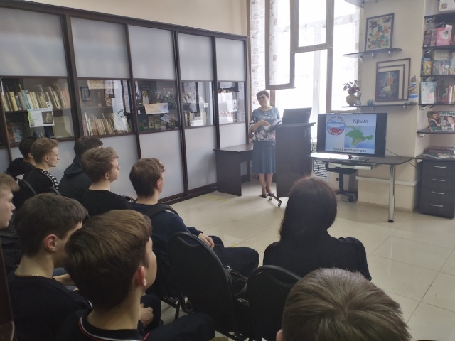 Патриотический час «Россия – Крым, мы вместе!», посвященный Дню воссоединения Крыма с Россией прошёл в Центральной городской библиотеке 18 марта.