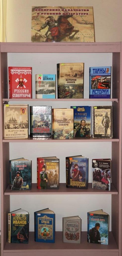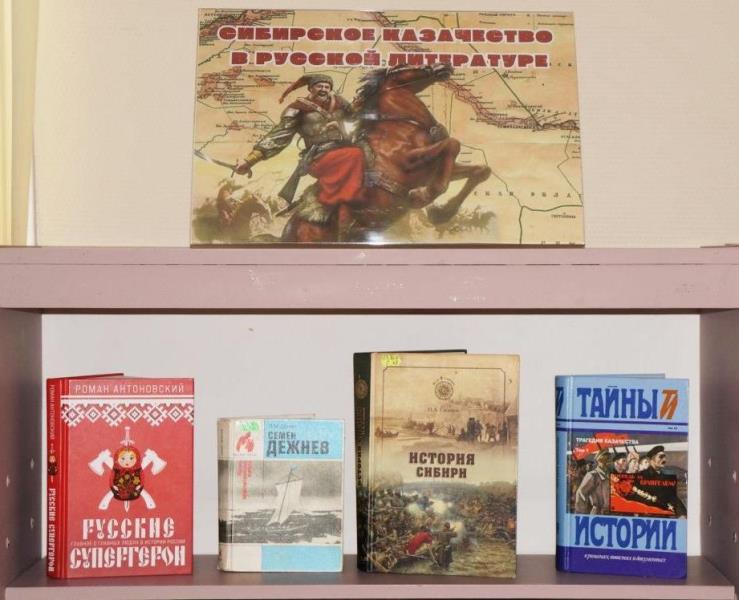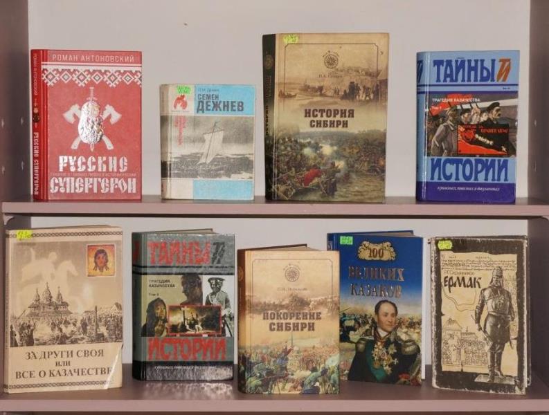 На выставке представлена документальная и художественная литература об истории, традициях и культуре Сибирского казачества.