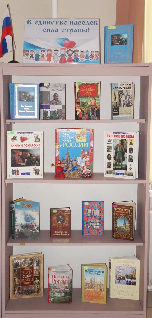 День народного единства – это дань памяти нашей славной истории. А книги – это хранители истории и культуры. На выставке представлена литература о героях того времени. О жизни и подвиге Кузьмы Минина и Дмитрия Пожарского расскажут издания из серии «Жизнь Замечательных Людей». Книги, представленные на выставке, позволят читателям более подробно узнать об этом тяжелом для России времени, истории русского народа, русских полководцах.