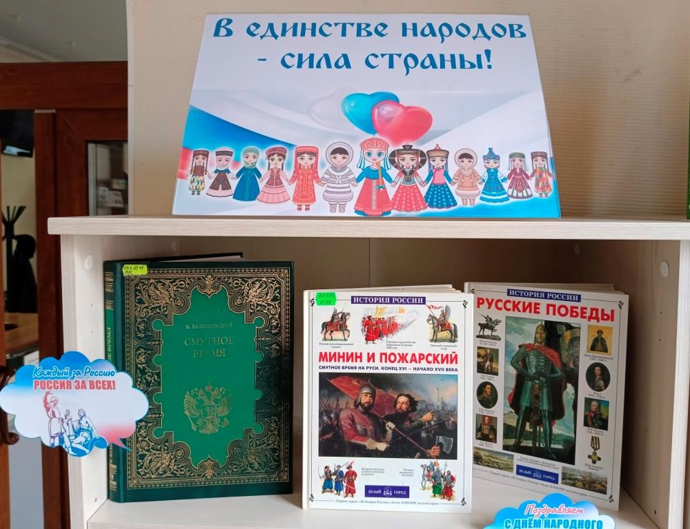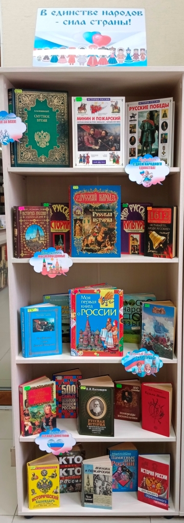 В Центральной городской библиотеке открылась выставка-просмотр «Сила России в единстве народов», приуроченная ко Дню народного единства.
