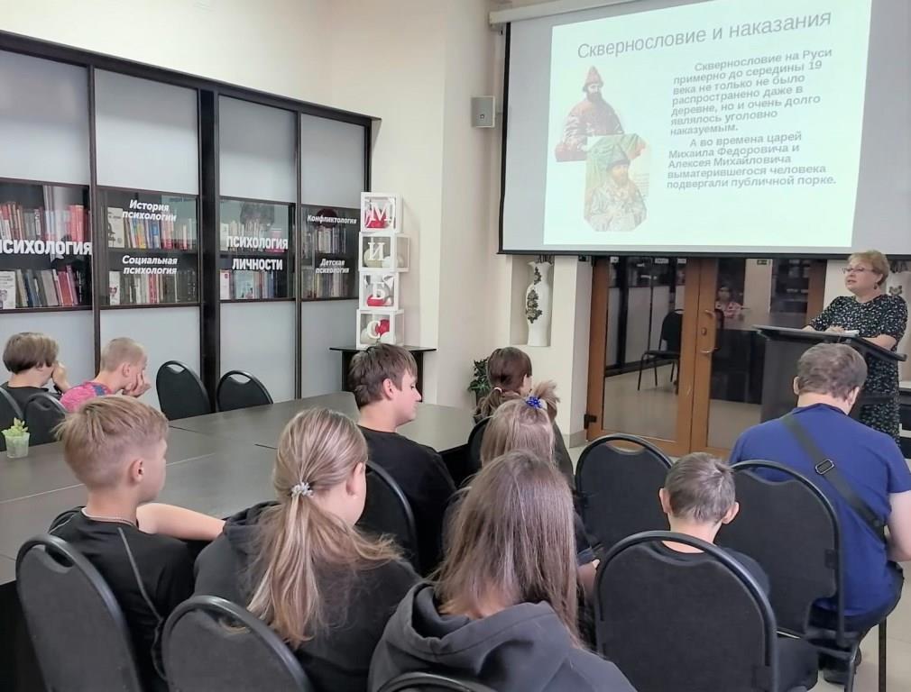 Подростки из МКУ «Социально-реабилитационный центр для несовершеннолетних» познакомились с историей возникновения бранных слов на Руси, обсудили правовой аспект: какое наказание влечёт нецензурная брань в общественных местах.