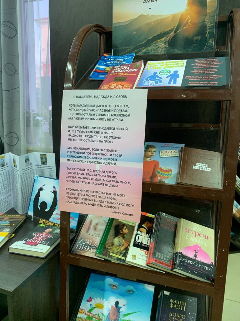 С 28.11.2024 г. по 06.12.2024 г. в Центральной городской библиотеке организована книжная выставка «Сильные духом», на которой представлены как официальные документы о социальной защите инвалидов в России, о правах, льготах, компенсациях, так и документальная и художественная литература о людях с ограниченными возможностями здоровья, но сильных духом, о их нереальных возможностях перед лицом жизненных испытаний и трудностей, которые они преодолевают.