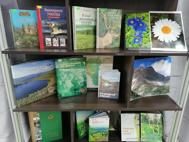 Особое место на выставке уделено книжным изданиям о заповедной природе Кузбасса. Листая их страницы можно совершить путешествие в Кузнецкий Алатау и Шорский национальный парк, остановиться на «Липовом острове» и посетить природный музей-заповедник «Томская писаница».