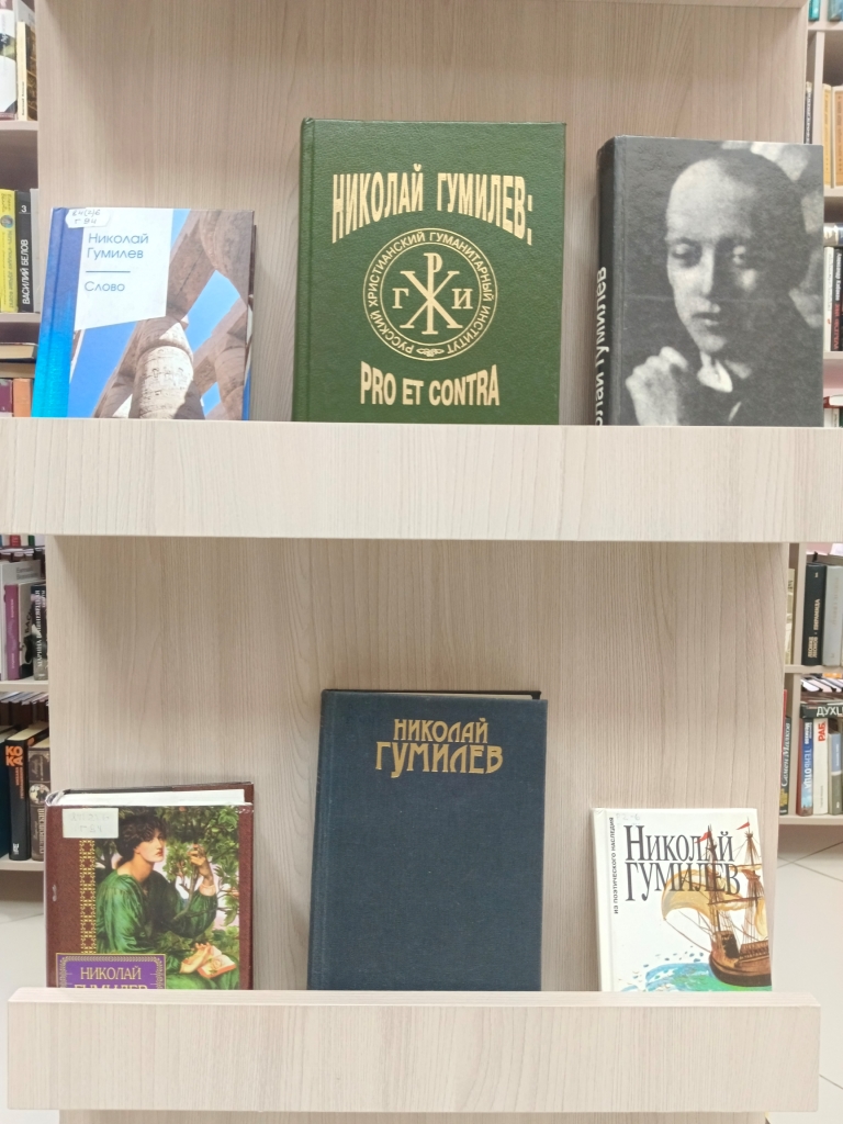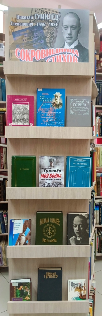 Книжная выставка, посвящённая 140-летию со дня рождения русского поэта, переводчика, литературного критика Николая Степановича Гумилёва (1886-1921), оформлена в Центральной городской библиотеке.