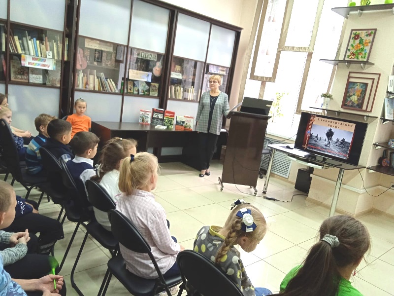 Учащиеся познакомились с историческими памятниками той великой битвы, посмотрели хронику о мужестве и подвиге жителей города-героя. Завершилась встреча обзором книг о защитниках Сталинграда и минутой молчания.