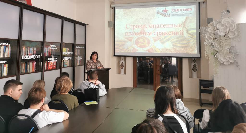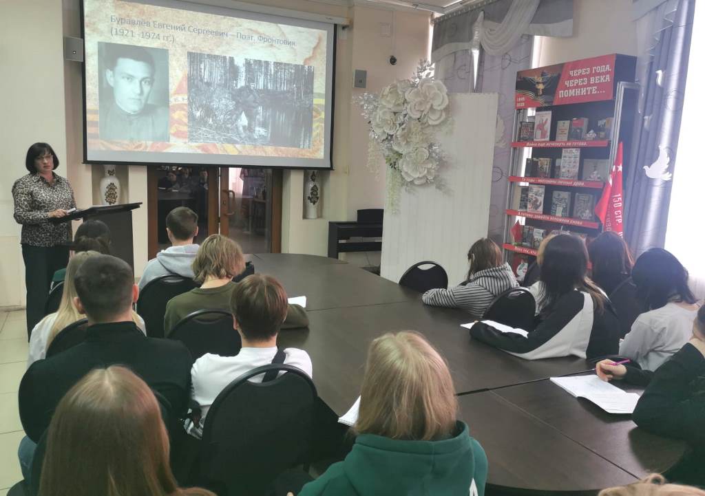 Студенты Междуреченского горностроительного техникума узнали о жизненном и творчеством пути писателей фронтовиков из Кузбасса. Из самого пекла боёв, кровью своих сердец они писали свои произведения. И их строки, были не менее мощным оружием, чем боевое оружие армий. Слово военного писателя вселяло надежду, веру в Победу, придавало силы людям на фронте и в тылу.