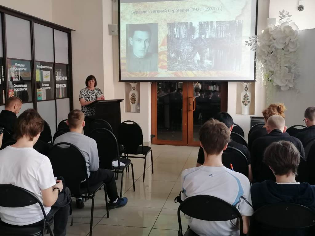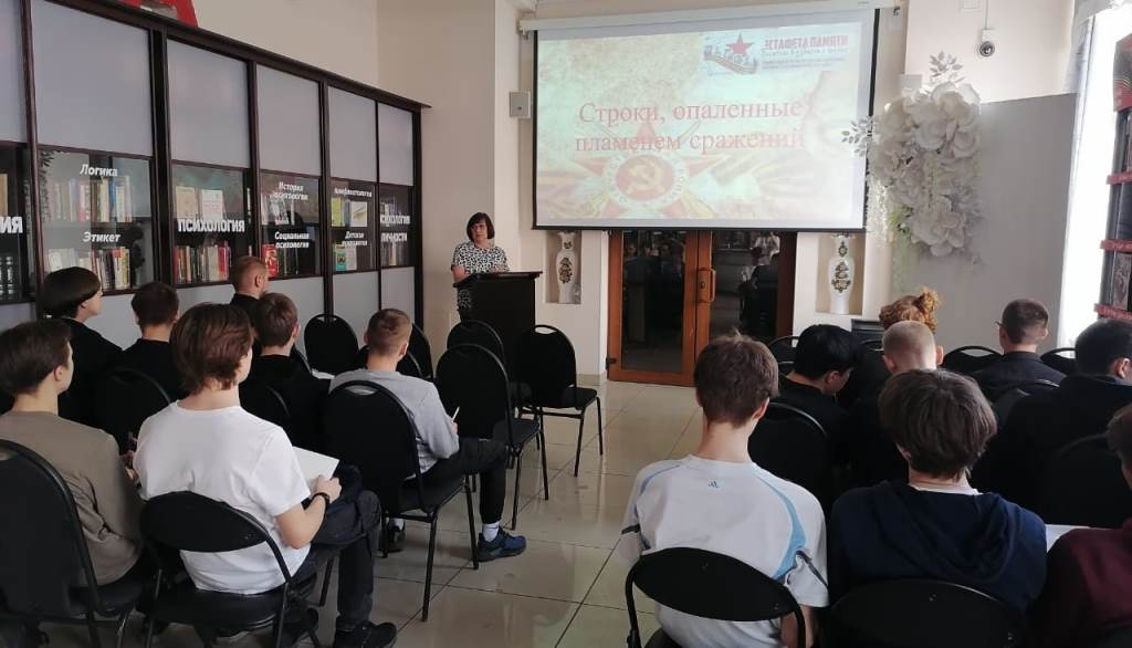 Студенты Междуреченского горностроительного техникума узнали о жизненном и творчеством пути писателей фронтовиков из Кузбасса. Из самого пекла боёв, кровью своих сердец они писали свои произведения. И их строки, были не менее мощным оружием, чем боевое оружие армий. Слово военного писателя вселяло надежду, веру в Победу, придавало силы людям на фронте и в тылу.