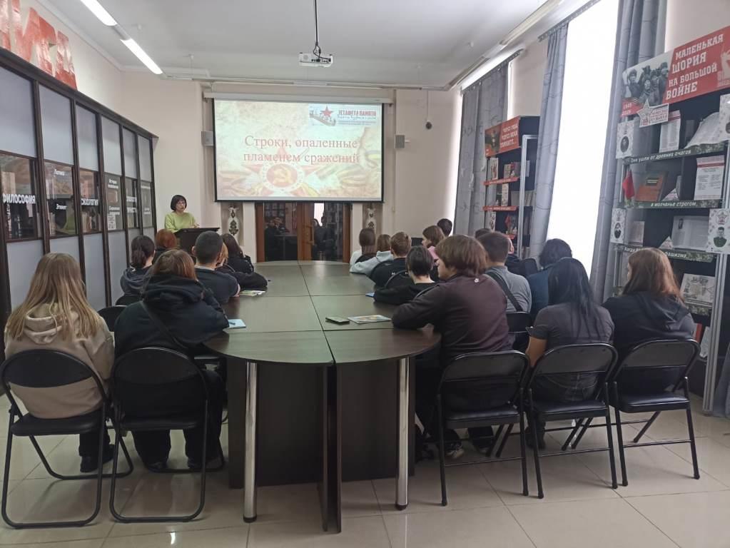 13 ноября в рамках сетевой литературной программы «Писатели Кузбасса о войне» в Центральной городской библиотеке прошел час литературного краеведения «Строки, опаленные пламенем сражений».