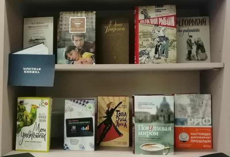 Экспозиция представляет произведения российских и зарубежных авторов о студентах, студенческой поре. Это книги о взаимоотношениях студентов, любви, дружбе, о веселых приключениях, учебе и преподавателях.