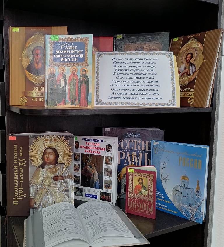 Книжная выставка «Свет веры православной», приуроченная ко Дню православной книги, приглашает читателей окунуться в мир духовности, мудрости и истории православия.