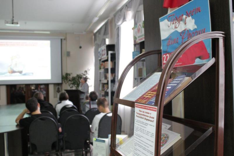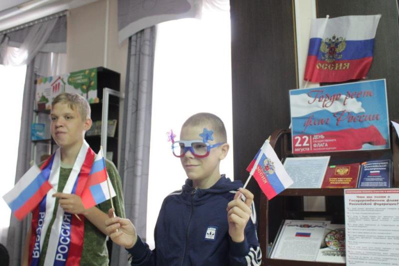 Участники мероприятия ознакомились с книжной выставкой «Гордо реет флаг России», ответили на вопросы викторины «Что мы знаем о Государственном флаге Российской Федерации» и получили призы.