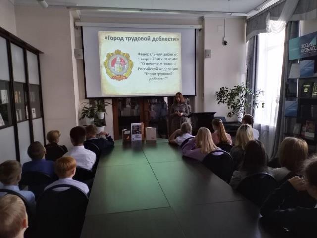 Патриотический час, посвященный присвоению двум крупным городам, промышленным и индустриальным центрам Кемерово и Новокузнецку почётного звания «Город трудовой доблести», состоялся 16 сентября в Центральной городской библиотеке.