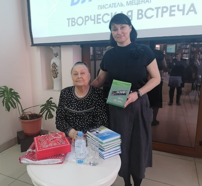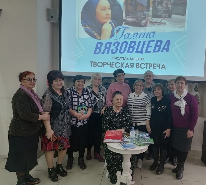 Уже во второй раз Галина Вязовцева – писатель, меценат и просто интересная женщина побывала у нас в гостях. Галина Сергеевна поделилась с присутствующими впечатлениями от своей недавней поездки в Чечню, ведь она, своего рода, посол Кузбасса в Чеченской Республике. У писательницы вышло уже несколько книг, посвященных удивительному, гостеприимному и храброму чеченскому народу. Галина Сергеевна рассказала, как появились сюжеты для этих книг, зачитала отрывки из произведений.