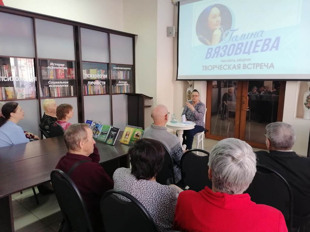 Творческая встреча с писателем, меценатом из города Белово Галиной Сергеевной Вязовцевой состоялась в Центральной городской библиотеке 2 марта.
