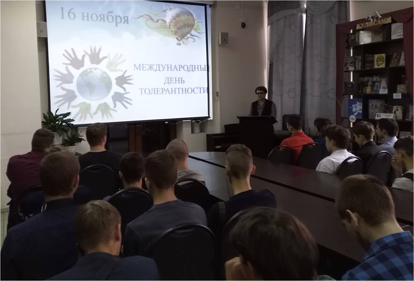 Студенты МГСТ познакомились с историей Смутного времени и Дня толерантности. Ребята узнали о неоднозначном понимании толерантности в разных языках мира. Большое внимание было уделено чертам толерантной личности и толерантным отношениям, воспитанию в духе толерантности, интолерантной личности. Говорили об уважении друг к другу, к обычаям, традициям и культуре разных народов. Прослушав китайскую притчу «Ладная семья», ребята рассуждали над значением главных слов, которые способствуют миру в семье. Студенты активно участвовали в обсуждении вопросов о толерантности.
