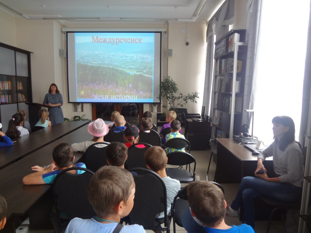 20 и 24 июля в Центральной городской библиотеке дети из лагерей дневного пребывания Центра детского творчества и МОУ № 2 совершили виртуальное путешествие по истории города Междуреченска «У каждого свой город на земле».