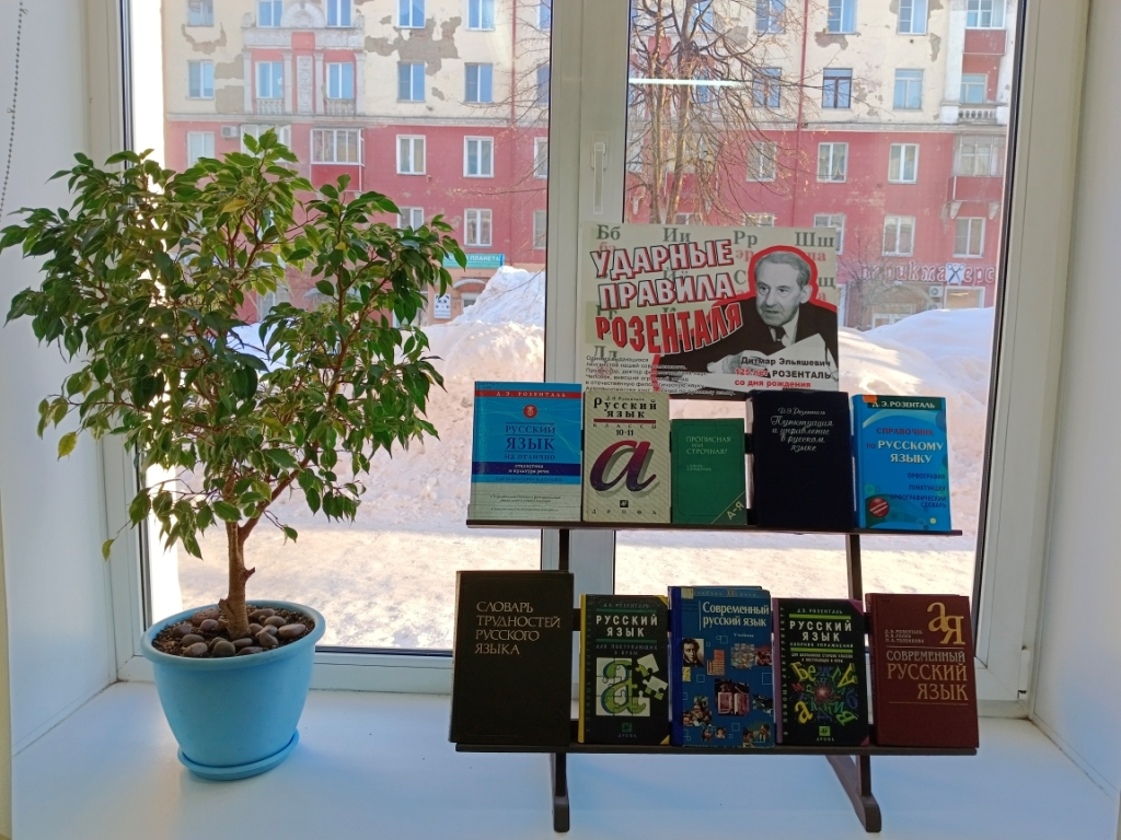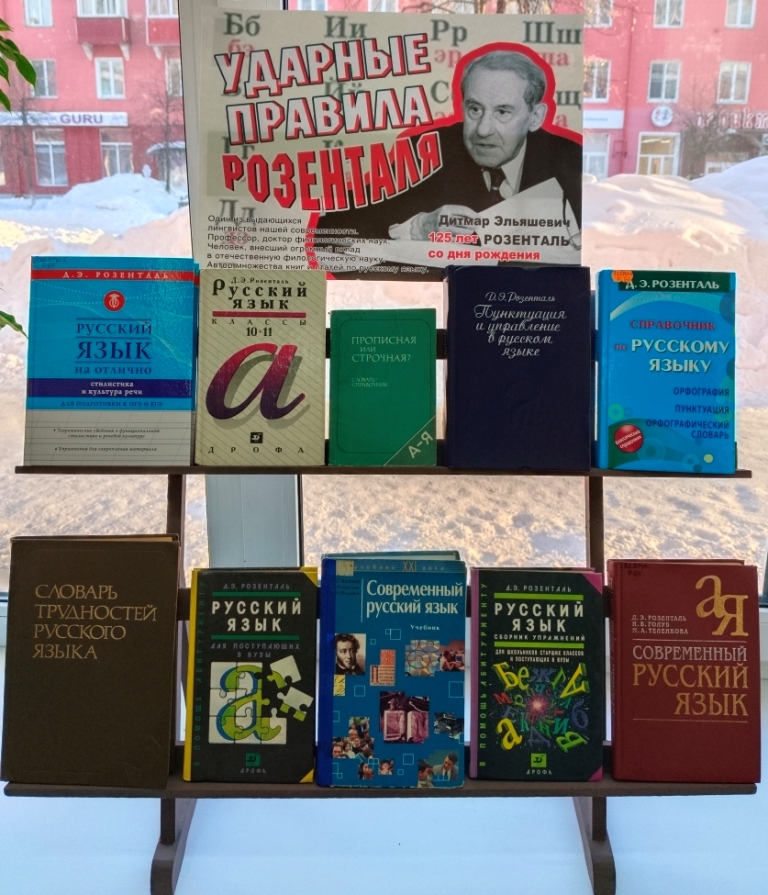 В Центральной городской библиотеке оформлена книжная выставка-портрет, посвящённая 125-летию со дня рождения Дитмара Эльяшевича Розенталя, советского и российского лингвиста, автора многочисленных трудов по русскому языку.