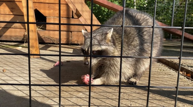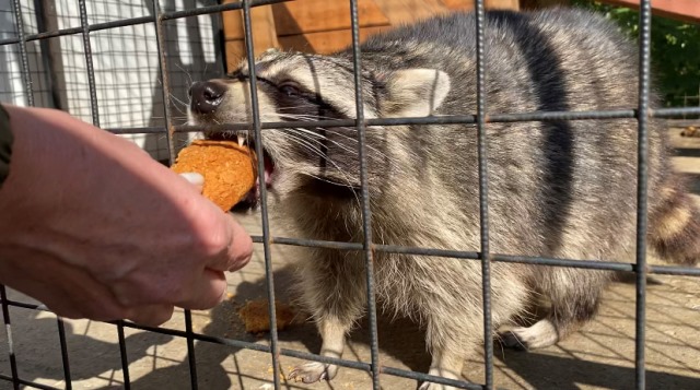 Тимошка пребывал в прекрасном расположении духа и с большим удовольствием пошел на контакт. Все лакомства: и курочка, и виноград, и особенно ароматное овсяное печенье пришлись еноту по вкусу.