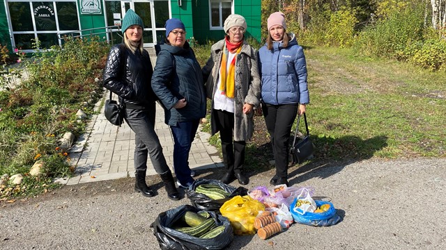 Библиотекари привезли обитающим в эко-центре животным гостинцы, как выращенные на собственных приусадебных участках, так и приобретенные в магазине.