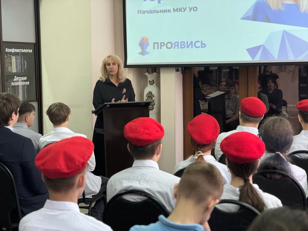 18 апреля в Центральной городской библиотеке состоялась профориентационная встреча с начальником управления образования Череповской Татьяной Леонидовной.
