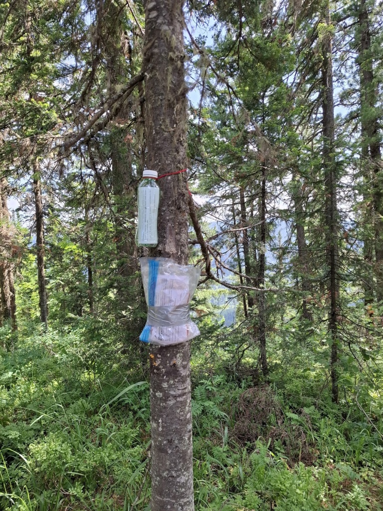 Подарок и капсула с кодом находятся на дереве, растущем слева от тропы при подходе к вершине.