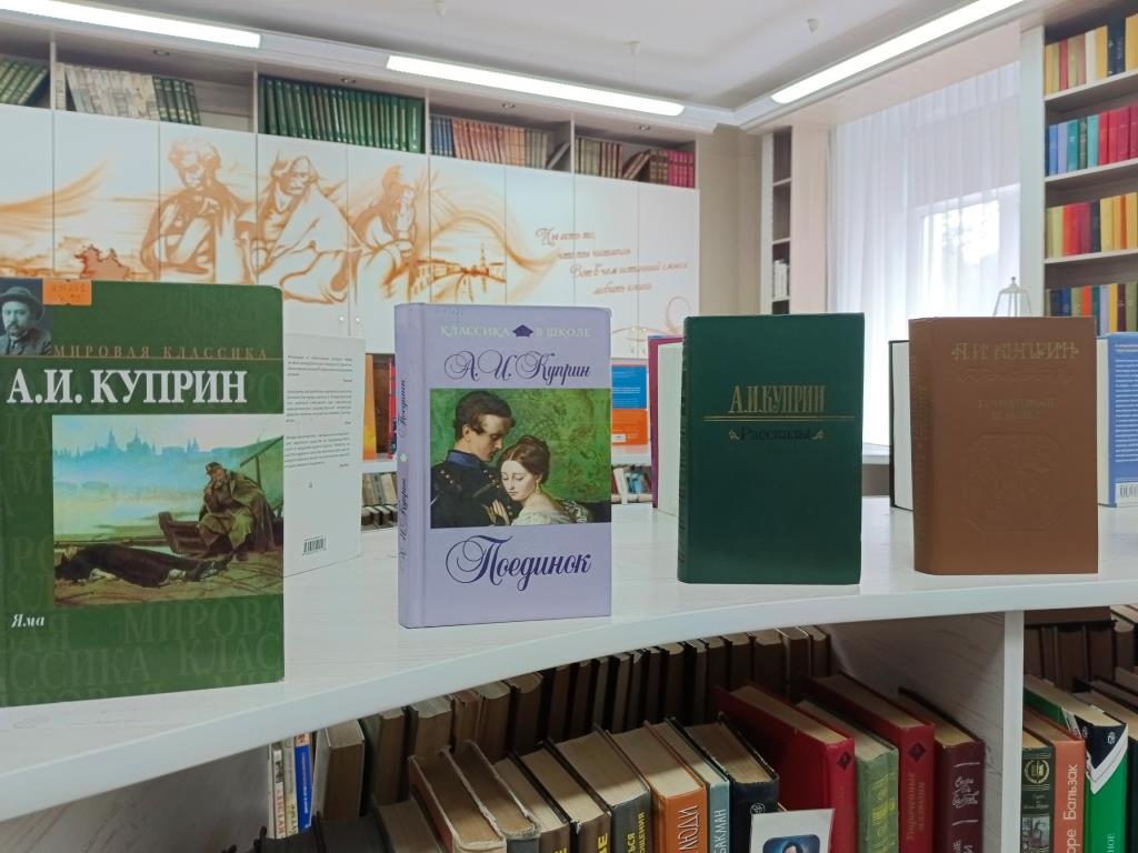 Книжная выставка, посвящённая 155-летию со дня рождения русского писателя, переводчика Куприна Александра Ивановича, оформлена в Центральной городской библиотеке.