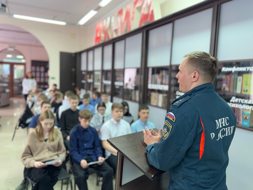 4 апреля в Центральной городской библиотеке прошла встреча с помощником начальника караула МЧС Петровым Сергеем Сергеевичем.