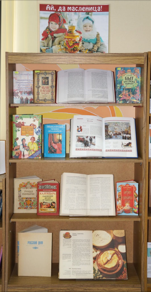 К этому празднику библиотекари Центральной городской библиотеки подготовили выставку-просмотр «Ай, да Масленица!».