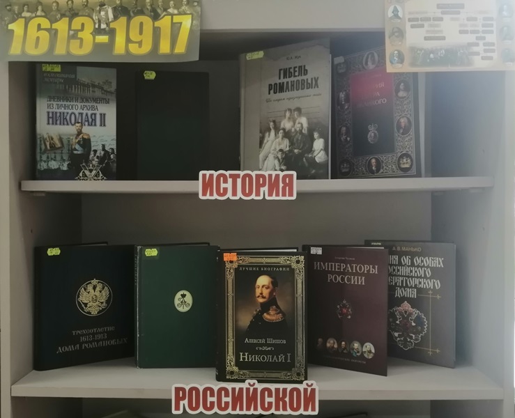 На выставке представлена литература, отражающая период правления династии, биографические издания, документальные материалы, воспоминания, очерки о представителях императорского Дома Романовых.