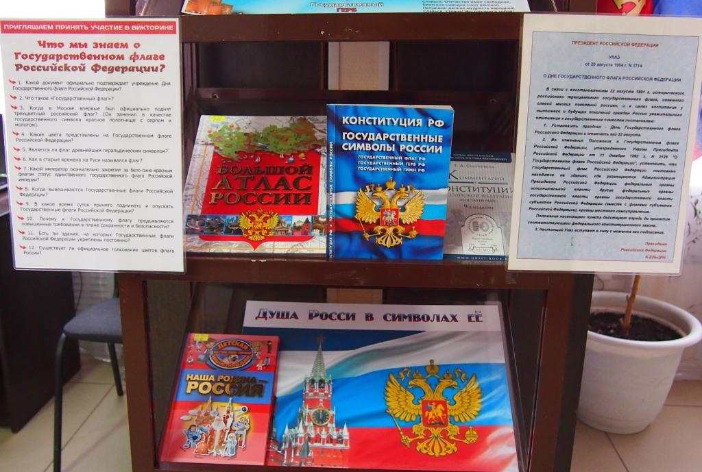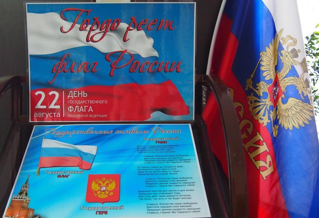 оформлена книжная выставка «Гордо реет флаг России».