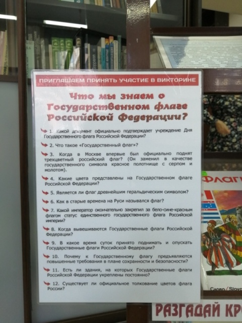 оформлена книжная выставка «Гордо реет флаг России».