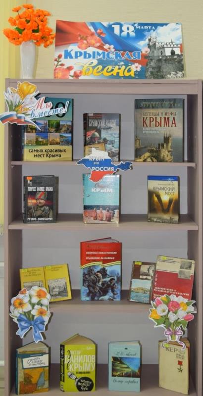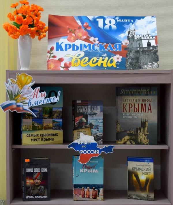 Книжная выставка-просмотр, посвященная Дню воссоединения Крыма с Россией, работает в Центральной городской библиотеке.