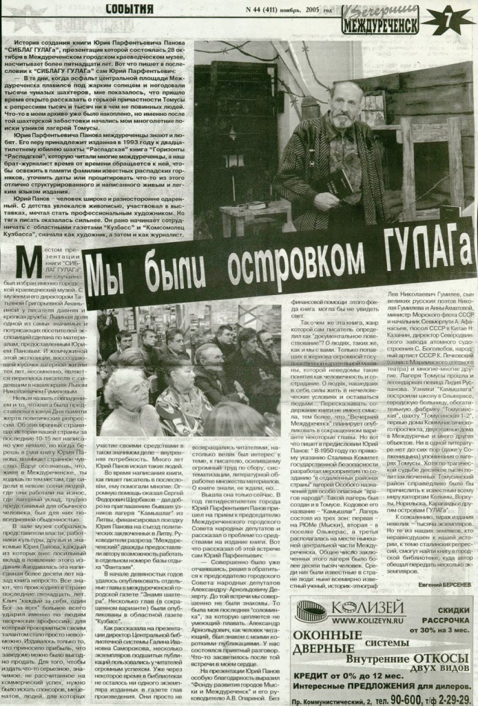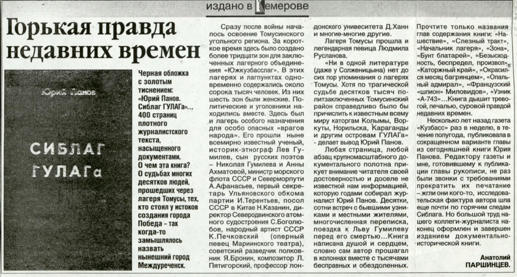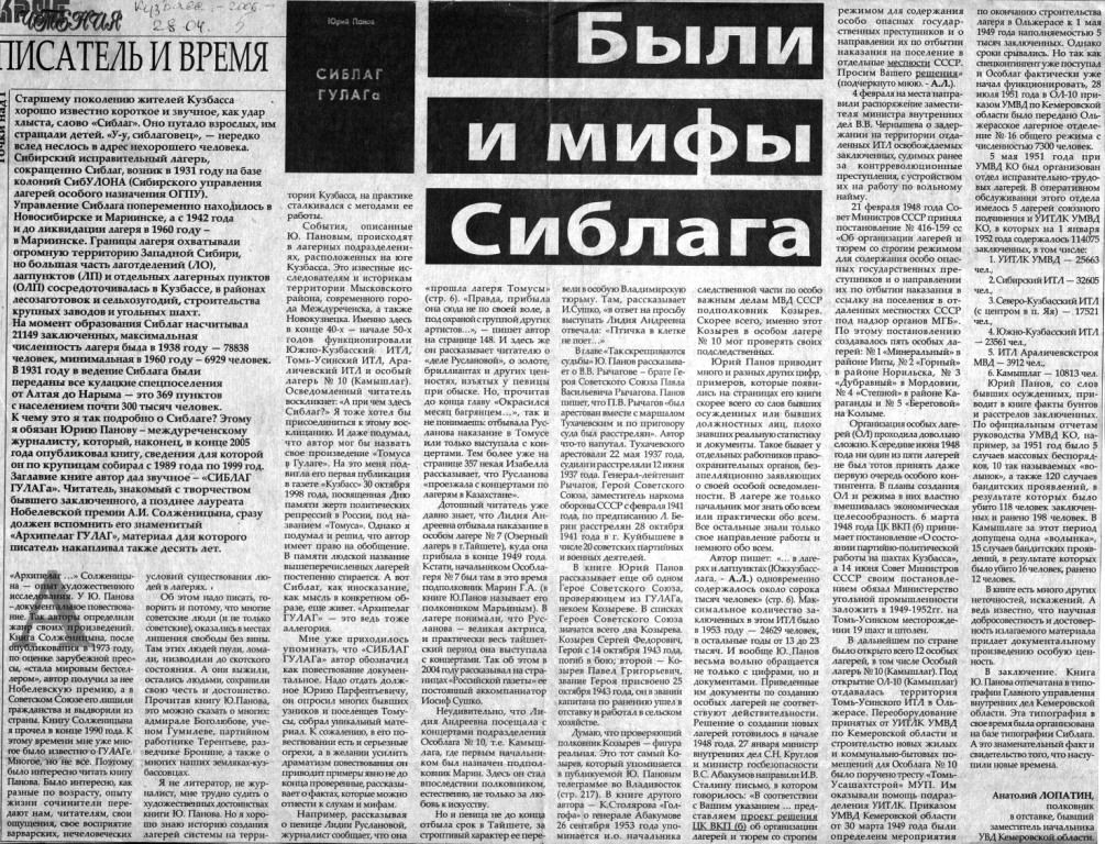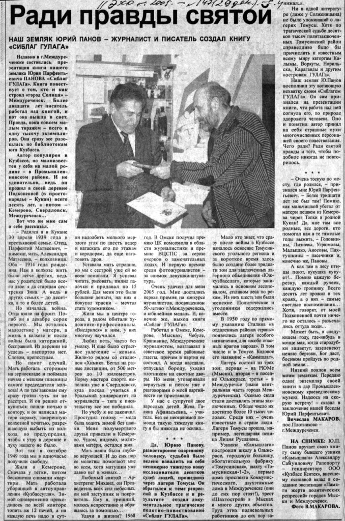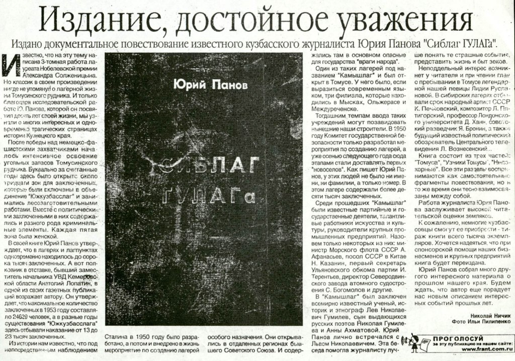 30 апреля исполняется 80 лет со дня рождения Юрия Панова – писателя, журналиста, автора книги «СИБЛАГ ГУЛАГа».