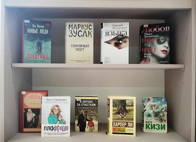 На выставке представлены самые интересные, по отзывам читателей, книги за прошедшую неделю. Среди них фантастика, запутанные истории, приключения, детективы, триллеры. Так, например, «Живые люди» Яны Вагнер – антиутопия, герметический триллер, продолжение романа «Вонгозеро». Укрывшись от эпидемии на острове посреди безлюдной карельской тайги, одиннадцать неприспособленных горожан вынуждены учиться выживать, добывать еду и защищаться от внешних угроз. Герои отрезаны от внешнего мира, заперты наедине друг с другом, как пауки в банке. Им предстоит научиться принимать друг друга, сосуществовать – тесно, бок о бок, или погибнуть.