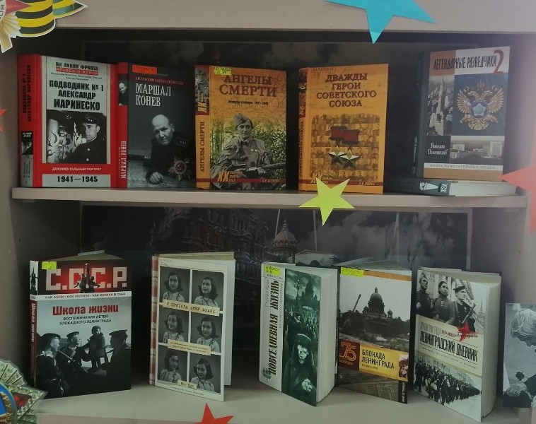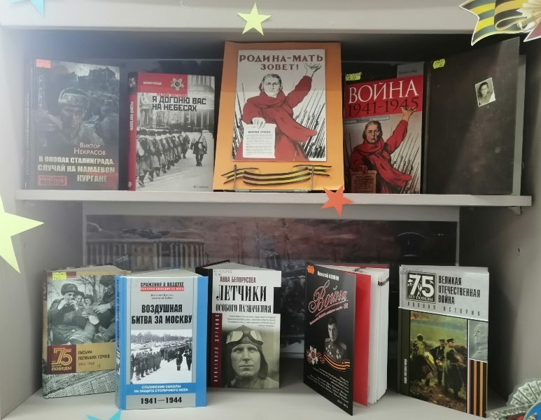 Представленные на выставке книги рассказывают о беззаветном героизме, о подвигах, совершенных нашими людьми во имя Родины Они помогут подробнее узнать о Великой Отечественной войне, глубже понять прошлое своей страны и её роль в мировой истории.