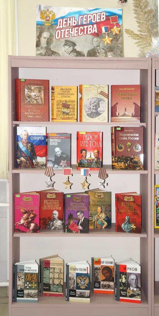 К этой дате в Центральной городской библиотеке оформлена выставка-память «День Героев Отечества». На книжной выставке представлены книги о героях России, а также об истории разных войн. Они помогут совершить исторический экскурс в героическое прошлое России, узнать о славных победах российских войск, которые сыграли важную роль в истории Отечества.