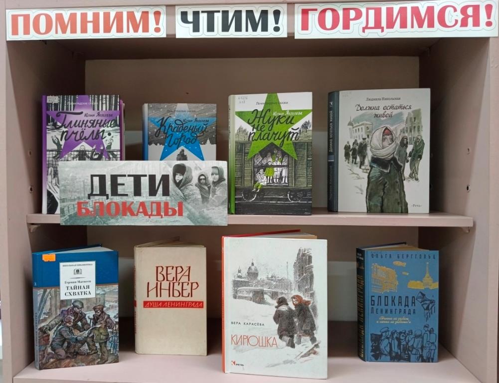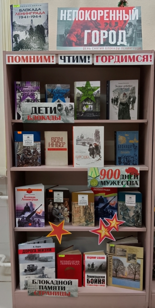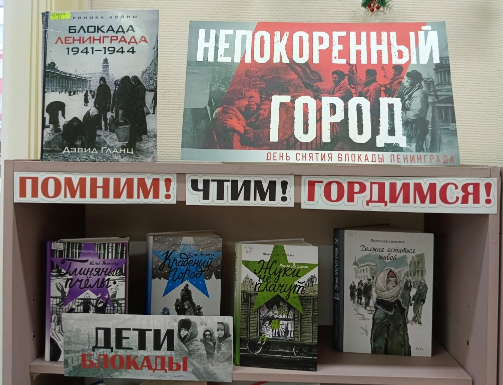 В книгах, представленных на выставке, рассказывается о беспримерном подвиге осажденного фашистами Ленинграда, о мужестве и героизме его жителей, сумевших выстоять в нечеловеческих условиях блокады.